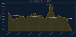 | Spam Trap Hits | ~130,000 (2024) / 80,000 (2023) | +40 % to +60 % | High residual values | Significantly increased |
